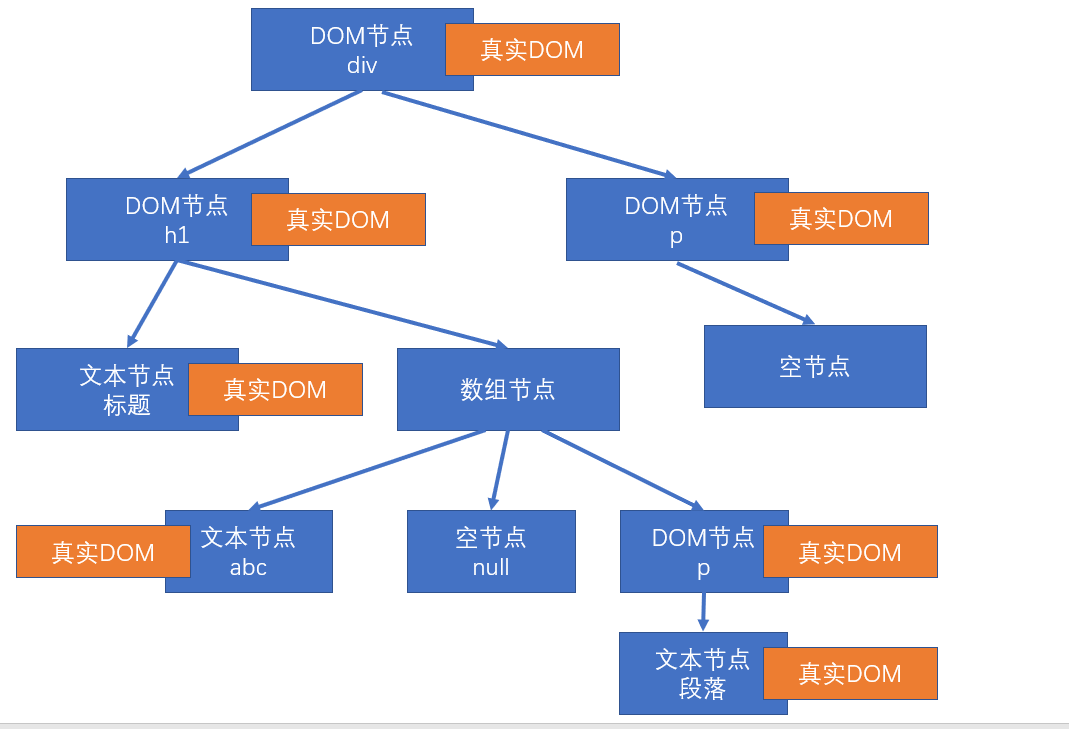 创建一个React元素,称作虚拟DOM,本质上是一个对象